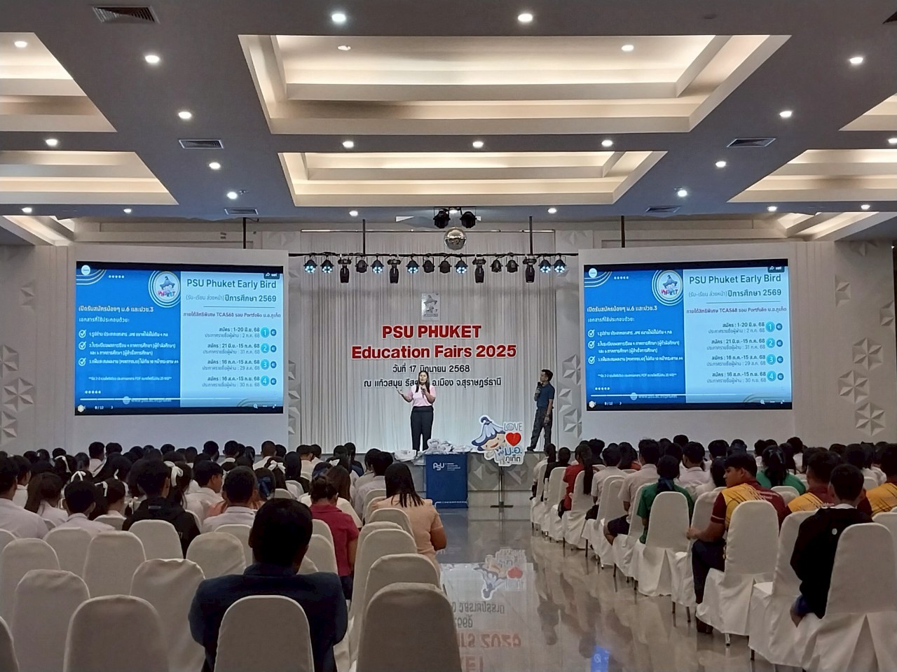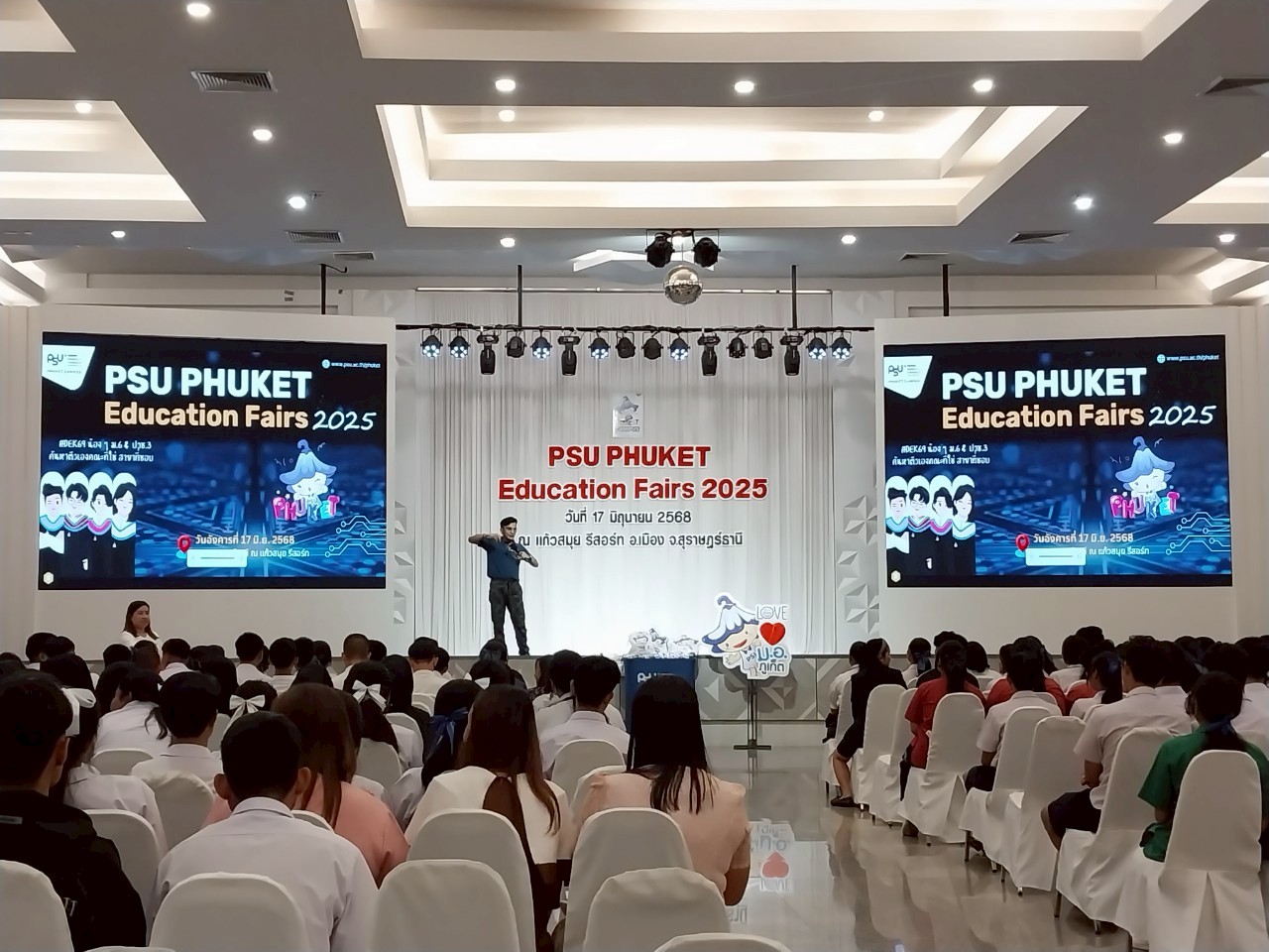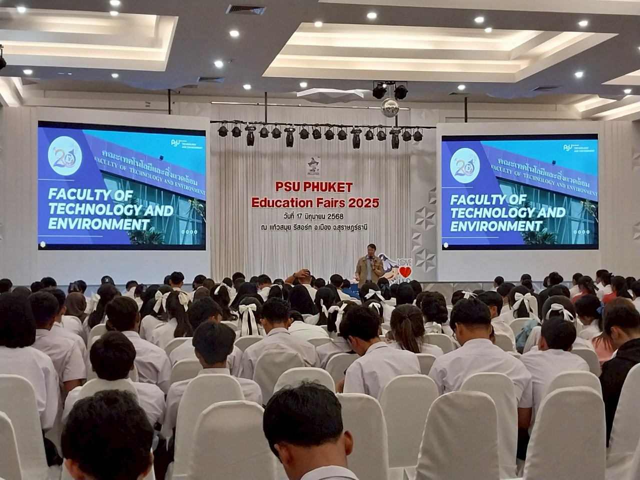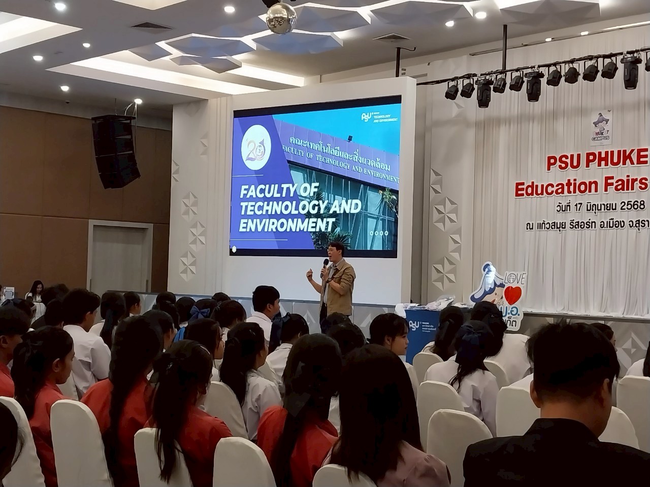 คณะเทคโนโลยีและสิ่งแวดล้อม มหาวิทยาลัยสงขลานครินทร์ วิทยาเขตภูเก็ต เข้าร่วมกิจกรรม PSU Phuket Education Fairs 2025 เมื่อวันที่ 17 มิถุนายน 2568 ณ แก้วสมุยรีสอร์ท จ.สุราษฎร์ธานี โดยได้จัดบูธแนะนำหลักสูตร กิจกรรมเด่น และแนวทางอาชีพของบัณฑิตในอนาคต พร้อมทีมอาจารย์และนักศึกษาร่วมให้ข้อมูลอย่างเป็นกันเอง สร้างความประทับใจและได้รับความสนใจจากน้อง ๆ นักเรียนที่เข้าร่วมงานเป็นจำนวนมาก บรรยากาศภายในงานเต็มไปด้วยความอบอุ่น สนุกสนาน และยังมีกิจกรรมแจกของที่ระลึกสุดน่ารักจากคณะฯ อีกด้วย นอกจากนี้ ภายในงานยังมีการเปิดรับสมัครนักศึกษาใหม่ พร้อมสัมภาษณ์ และทราบผลทันทีในงาน