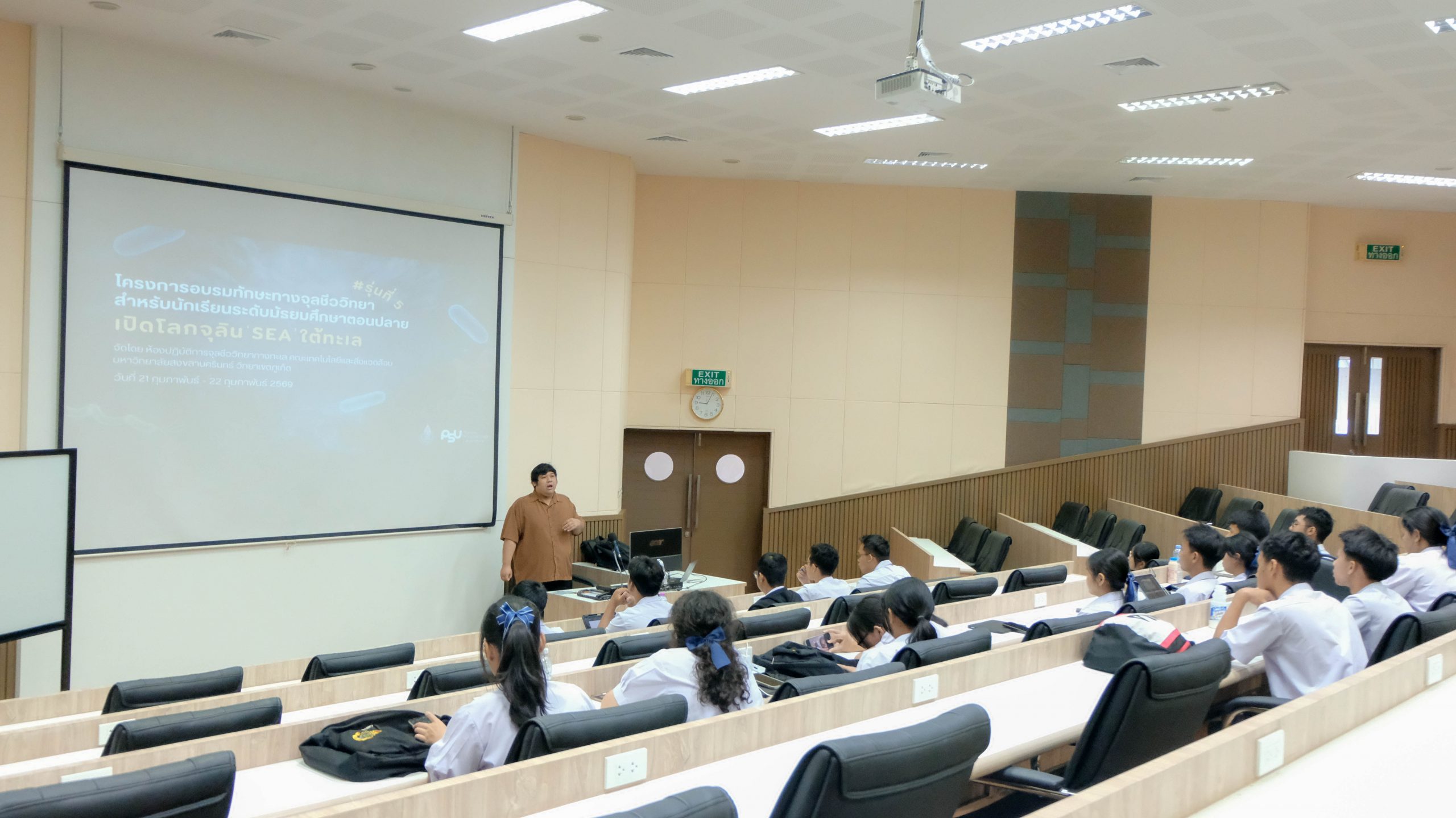 คณะเทคโนโลยีและสิ่งแวดล้อม มหาวิทยาลัยสงขลานครินทร์ วิทยาเขตภูเก็ต จัดโครงการอบรมทักษะทางจุลชีววิทยาสำหรับนักเรียนระดับมัธยมศึกษาตอนปลาย “เปิดโลกจุลินทรีย์ใต้ทะเล” รุ่นที่ 5 สำหรับนักเรียนชั้นมัธยมศึกษาปีที่ 4/2 โรงเรียนเฉลิมพระเกียรติสมเด็จพระศรีนครินทร์ ภูเก็ต ในพระราชูปถัมภ์สมเด็จพระเทพรัตนราชสุดาฯ สยามบรมราชกุมารี ระหว่างวันที่ 21-22 กุมภาพันธ์ 2569 ณ ห้องปฏิบัติการชีววิทยาและจุลชีววิทยาทั่วไป